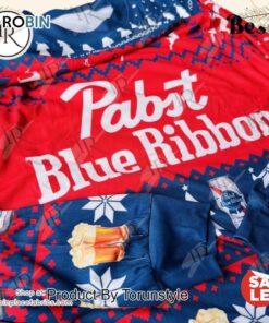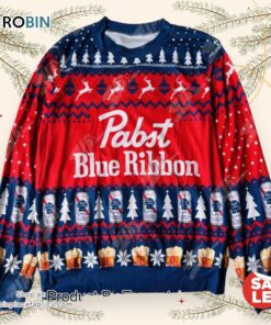 Pabst Blue Ribbon Ugly Christmas Sweater Vintage Beer Lover's Holiday Sweater details