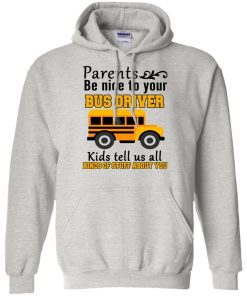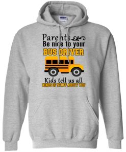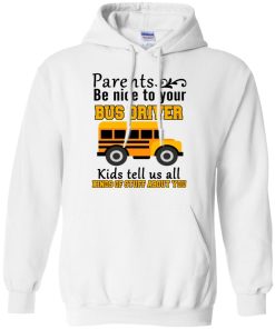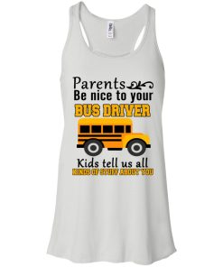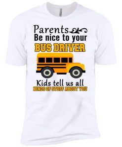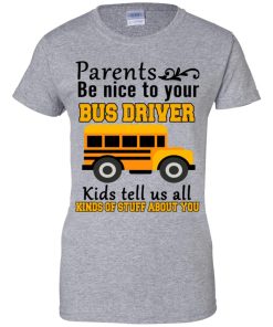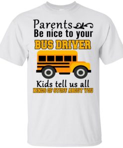 Parents be nice to your bus driver kids tell us all kinds of stuff about you shirt. T shirt, tank top, hoodie available