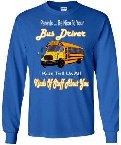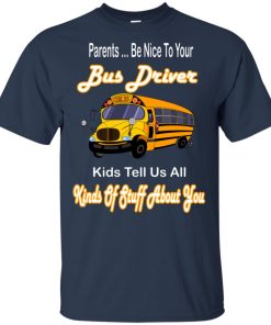 Parents be nice to your bus driver kids tell us all kinds of stuff about you shirt.