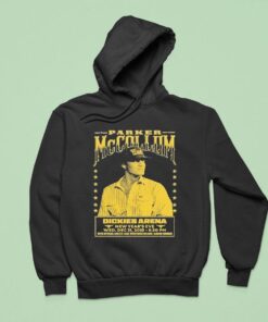 A bold yellow-gold silhouette of Parker McCollum anchors this design, his figure detailed with starburst accents that glow against a deep, vintage-inspired backdrop. The graphic feels like a relic of old concert posters—weathered and alive with energy—built around a boldly decorative serif font that has been given that classic distressed treatment. The black and gold palette strikes a sharp contrast that echoes the charged atmosphere of a late-night show, making it feel vivid and celebratory all at once. This shirt taps into the vibrant pulse of a shared moment—a New Year’s Eve gathering at Dickies Arena that was as much about the music as the communal spirit. It carries that unmistakable weight of a keepsake for anyone who’s followed Parker’s rise or marked the turning of the year with his raw, heartfelt sound. Wearing it is like holding a ticket stub in fabric form, a badge of belonging for country music fans who appreciate both the storytelling and the scene. Whether worn after the last encore or kept for memory’s sake, this piece quietly honors the kind of night where every lyric lingers a little longer. It makes for an understated gift among country aficionados, a way to carry that energy home without any flash beyond the design’s striking vintage flair. For those who know that music and moment converge, the Parker McCollum 12.31.2025 Dickies Arena shirt offers a tangible thread to something unforgettable.