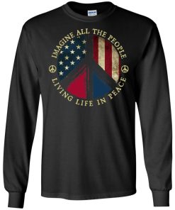 Peace sign American flag – Imagine all the people living life in peace shirt. Buy it now, from $19.99 and $3.99 shipping. This shirt available in t shirt, long sleeve, hoodie and multiple color.