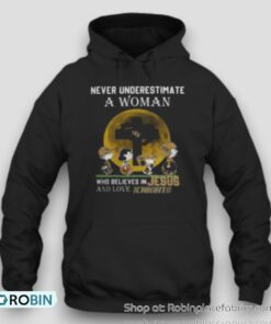 Peanuts Characters Never Underestimate A Woman Who Believes In Jesus And Loves UCF Knights Unisex Shirt