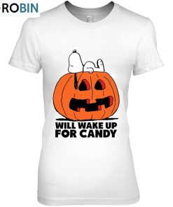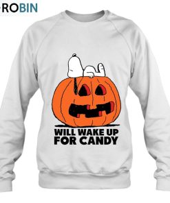 This Peanuts Halloween Snoopy Wake For Candy Ver2 Unisex Shirt is a fun, festive way to kick off the Halloween season. The short-sleeve shirt features a spooky Snoopy, the iconic member of the Peanuts gang, and the phrase wake up for candy. The classic design is printed on a comfy and stylish unisex shirt, available in black and charcoal colors. Constructed using only high-quality fabrics, this shirt is designed to last, even after multiple uses. Wear this Peanuts Halloween shirt to any trick-or-treating event, costume party, or to just lounge out at home. Its breathable material allows for easy mobility and unparalleled comfort, all while showing off your love for Halloween.