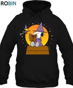 This Peanuts Halloween Wizard Snoopy Unisex Shirt is perfect for celebrating the delightful holiday of Halloween. It features a classic cartoon style design of the beloved beagle dressed up as a wizard! Snoopy is wearing a purple and white robe with a pointy hat and riding a broomstick across the night sky. The purple and orange color combination adds a beautiful, spooky effect and the shirt is comfortable and looks great on everyone. It's the perfect way to dress up for a Halloween party or just to express your love for the iconic characters from The Peanuts. You can be sure that wearing this shirt will always make you feel magical!