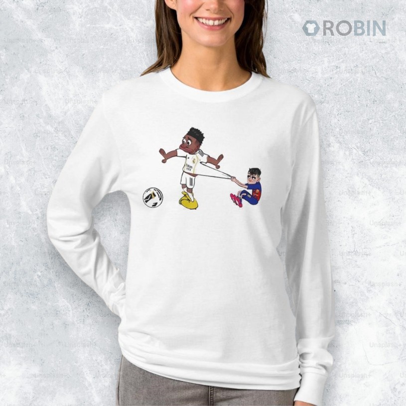That iconic image, immortalized on a tee! 🔥 Perfect for Barca fans who appreciate a little bit of rivalry & unforgettable moments. Get yours now and rep the passion!