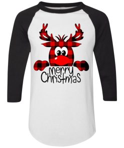 Peeping Reindeer Merry Christmas Raglan Jersey