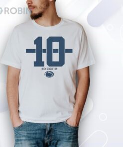 Support your favorite team with this bold design. Featuring Nicholas Singleton's name and number set against a classic stripe, this shirt is perfect for game day or any Penn State event. The iconic logo completes the look, making it a must-have for true fans.
