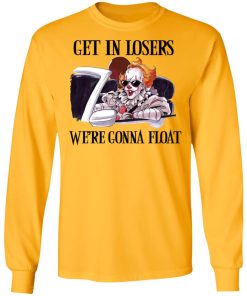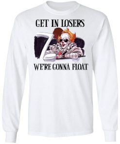 Halloween Pennywise get in losers we’re gonna float shirt. Buy it now, from $19.99 and $3.99 shipping. This shirt available in t shirt, long sleeve, hoodie, sweatshirt and multiple color.