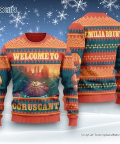 Personalize Name Welcome to Coruscant Star Wars Ugly Sweater and Sweatshirt For Men and Women details