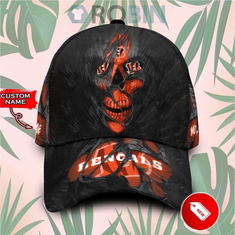 Personalized Cincinnati Bengals Skull Torn Fabric Classic Baseball Cap Hat