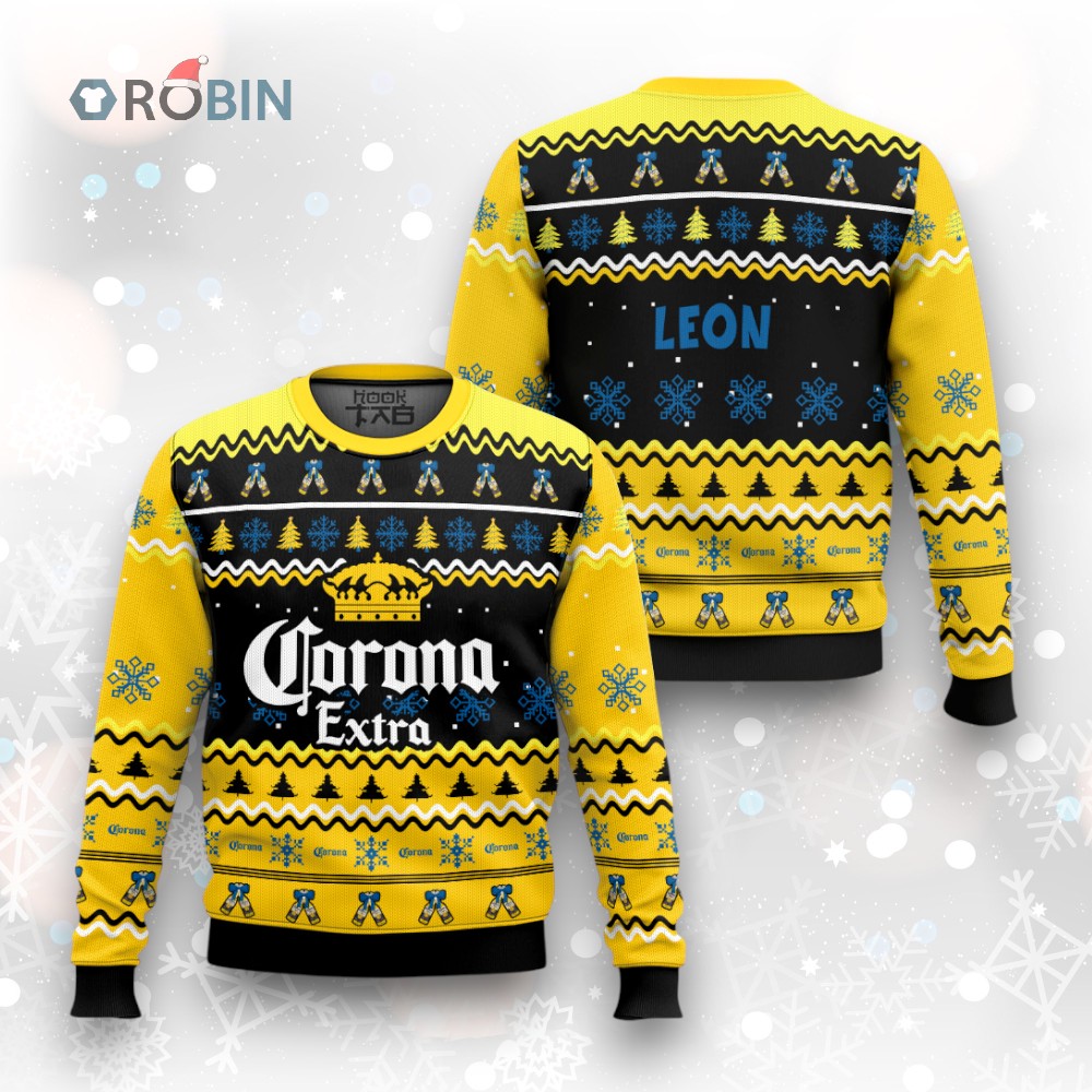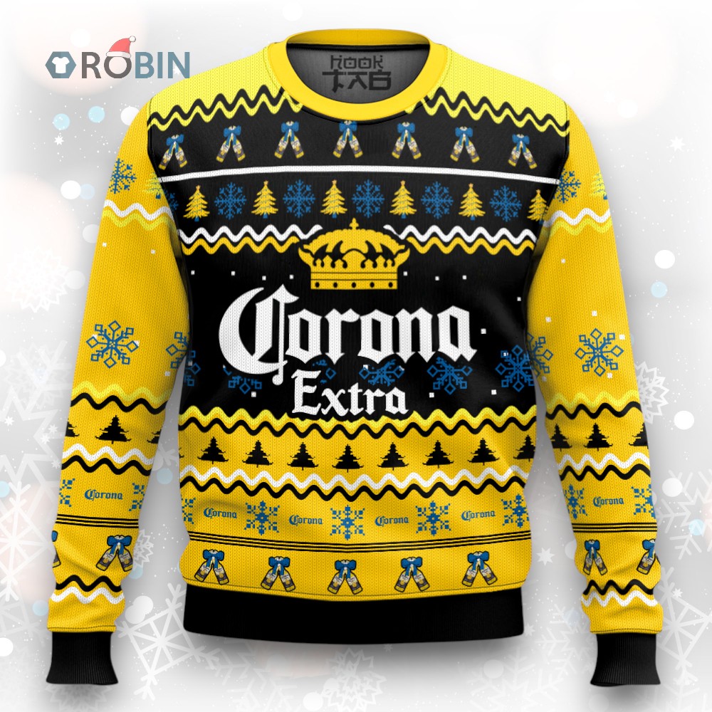 Get ready to sleigh the holidays! This year's ugly sweater game is strong with a Corona Extra twist. Pine trees, snow, and festive fun all wrapped into one cozy knit. Perfect for holiday parties or just spreading some cheer. Grab yours and get ready to be the life of the party!