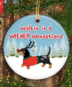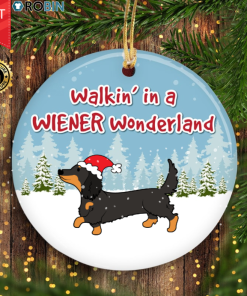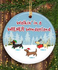 Personalized Christmas Dachshund Walkin’ in a Wiener Wonderland Ceramic Ornament