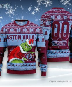 Personalized EPL Aston Villa Grinch Ugly Sweater and Sweatshirt All Over Print For Fan Limited Edition details