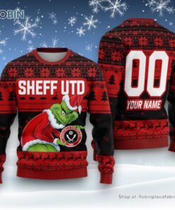 Personalized EPL Sheff UTD Grinch Ugly Sweater and Sweatshirt All Over Print For Fan Limited Edition details