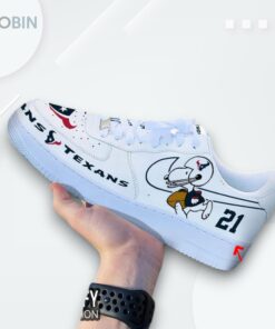 Show your Texans pride with these awesome custom kicks! Rock a Snoopy design blended with your favorite NFL team. Score major style points with these unique Air Force 1 Low Tops. Perfect for game day or everyday wear. Get yours now! #HoustonTexans #Snoopy #AirForce1