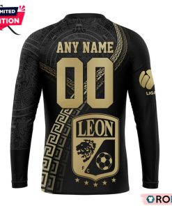 This customized shirt and hoodie features a unique black and gold design that is sure to make you stand out. The eye-catching colors and intricate detailing give it an elegant and luxurious look, perfect for showing your support for the LIGA MX Club Leon team in style. The high-quality printing ensures that the design stays vibrant and sharp for a long time, making it a great addition to any fan’s wardrobe. Whether you’re at a game or just out and about, this piece is sure to make a statement.