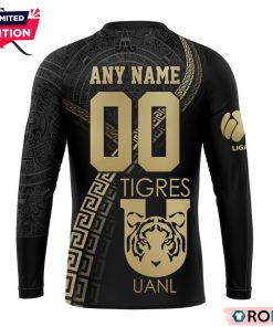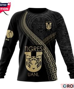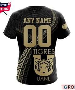 This unique and stylish black and gold design printed shirt hoodie is a must-have for any Tigres UANL fan. The intricate design features the team’s logo and colors in a personalized way, making it a standout piece in any fan’s wardrobe. With its comfortable material and trendy design, this hoodie is perfect for showing support for Tigres UANL in style. Whether you’re at the game or just out and about, this personalized shirt hoodie is sure to turn heads and show off your team spirit.