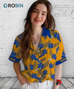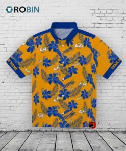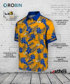 Show your Rams pride with this unique botanical Hawaiian shirt! Add your name or favorite player's for a custom touch. Perfect for game day or a casual LA vibe. Get yours now and stand out from the crowd! 🏈🌴☀️