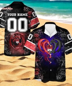 Personalized Lyon LOU Rugby Rose Dragons Design Hawaiian Shirt