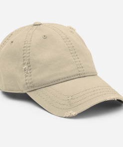 Expand your headwear collection with this fashionable Dad Hat. The fabric on its brim and crown is distressed, giving the hat an edgy look.