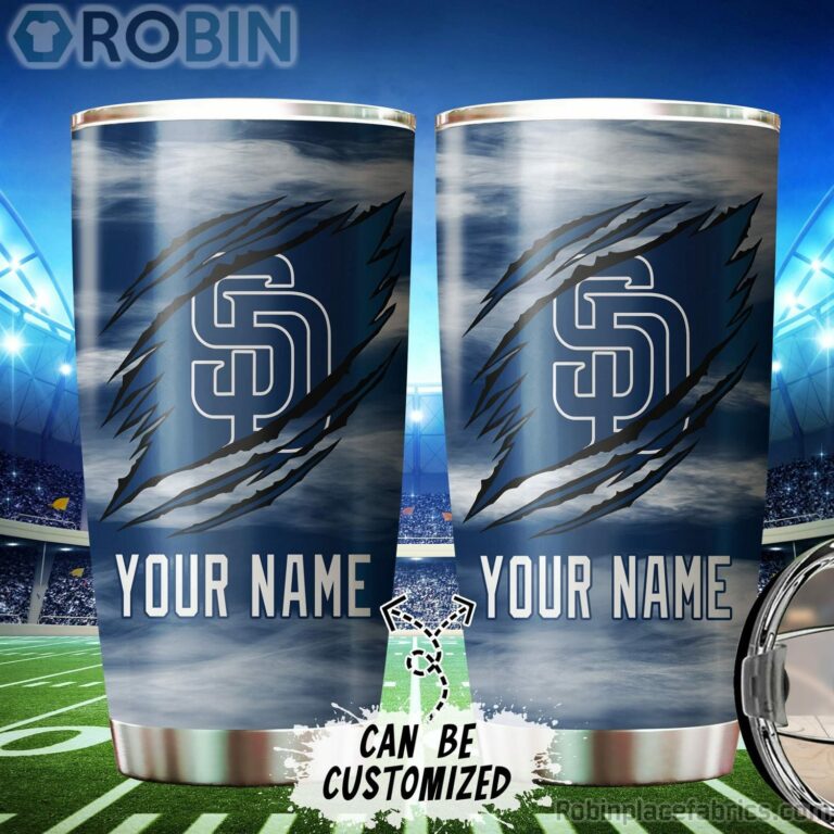 Personalized Name & Logo San Diego Padres Baseball Ripped Claw Tumbler