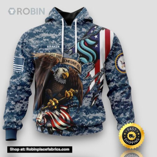 Personalized NHL Seattle Kraken Honor US Navy Veterans All Over Print 3D Hoodie Gift For Veterans Day features