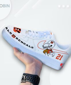 Show off your Bengals pride with these custom kicks! Featuring Snoopy in the orange and black, these AF1s are a touchdown for any fan. Get yours today and step up your game day style! 🏈🐾 #Bengals #Snoopy #CustomShoes