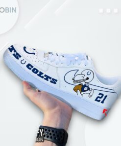 Touchdown in style! These custom Indianapolis Colts Air Force 1s are a must-have for any fan. Show off your team spirit with a unique design featuring everyone's favorite beagle, Snoopy. Comfort and style combine for the ultimate game day look! #Colts #Nike #AirForce1 #Sneakers