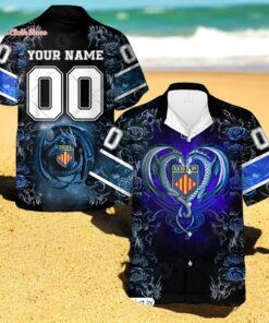 Personalized USA Perpignan Rugby Rose Dragons Design Hawaiian Shirt
