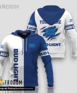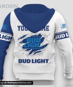 Personalized White and Blue Bud Light Claw Hoodie & Zip Hoodie features