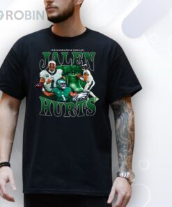 Show your pride for the Philadelphia Eagles with this Jalen Hurts shirt. Featuring vibrant graphics of the star quarterback in action, it's a perfect match with your favorite eagles snapback hat. Celebrate game day in style and support your team with this striking design!