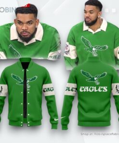 Dropping soon: KITH varsity jacket channeling serious Eagles vibes! Imagine rocking this with an eagles beanie hat on game day. Statement piece for any Birds fan. Get ready to rep your team in style!