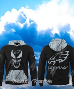 Philadelphia Eagles NFL x Venom All Black 2025 Hoodie features