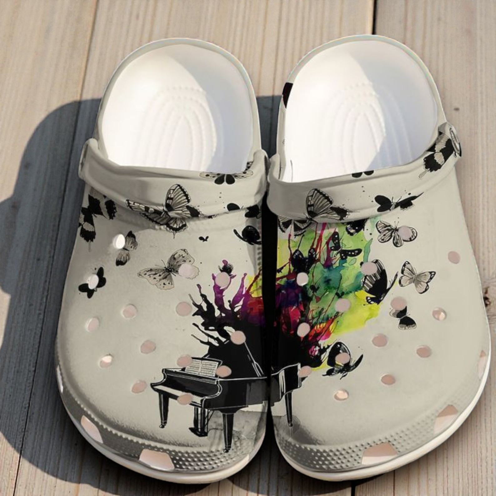 For those who hear a melody in everything they do, these shoes are a perfect match. We wanted to capture the feeling of getting lost in a song, so we designed these Crocs with a beautiful, artistic touch.