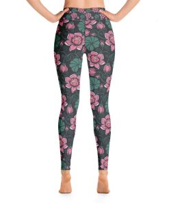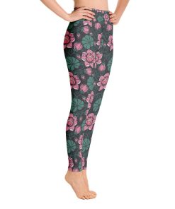Pink Flowers Yoga Leggings Women, High Waisted Tights