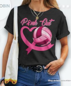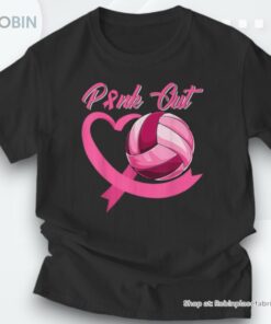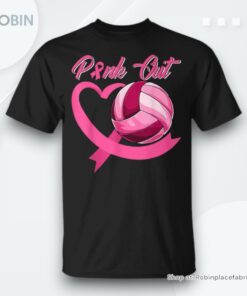 Pink Out Breast Cancer Pink Ribbon Heart & Volleyball Ball Unisex Shirt