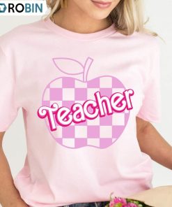 Pink Teacher Shirt, Kindergarten Barbie Teacher Short Sleeve Sweatshirt details