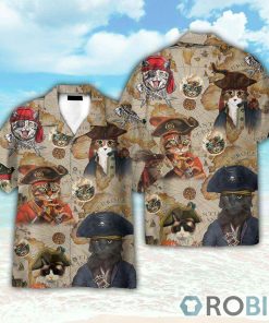 Pirate Cat Vintage Nautical Map Pattern Hawaiian Shirt features