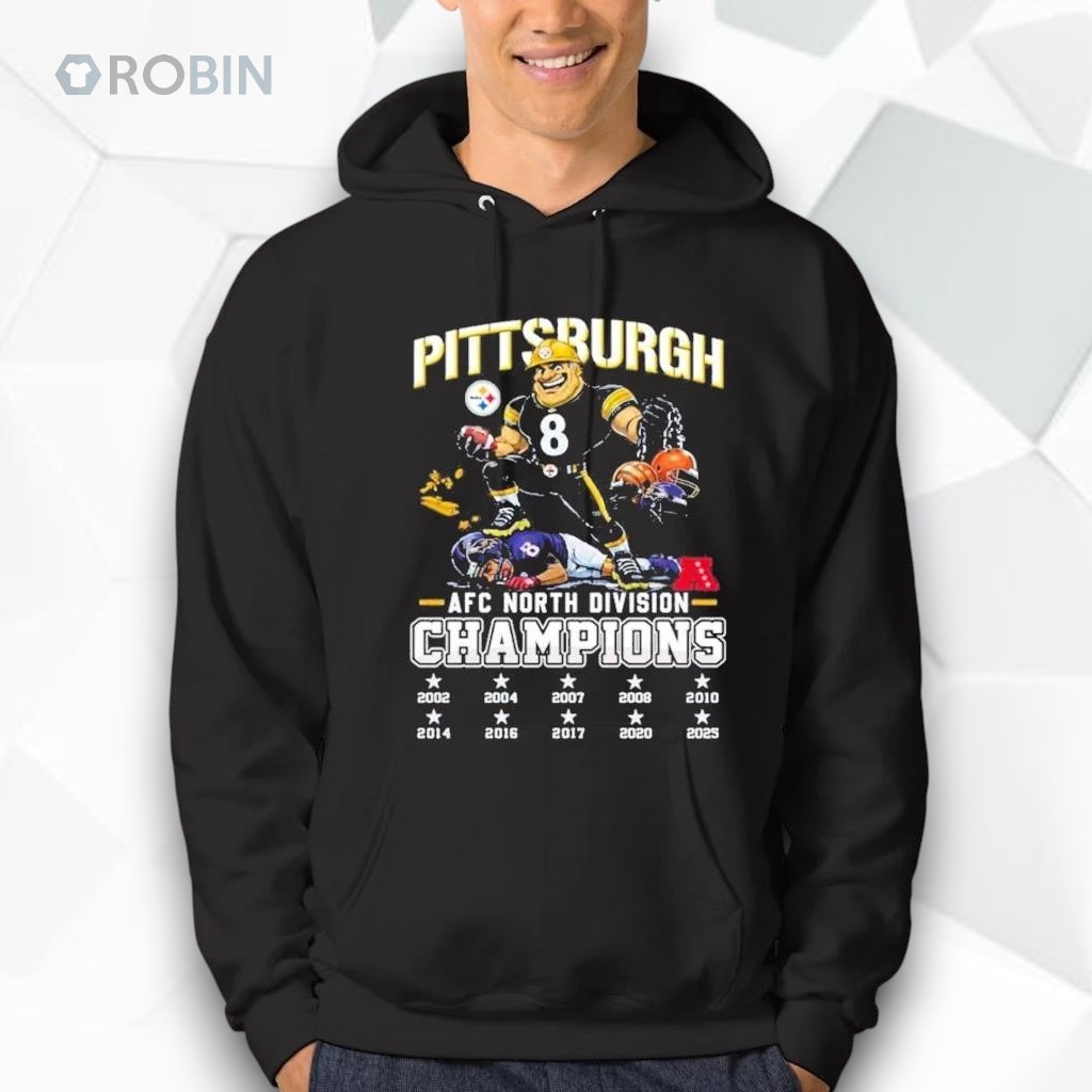 Celebrate the Steelers' triumphant 2025 season! This shirt commemorates their AFC North Division victory. Show your unwavering support for the Black and Gold. Get yours now and wear your pride!