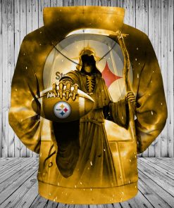 Pittsburgh Steelers Hoodies Men’s 3D Death Skull Hoodies.