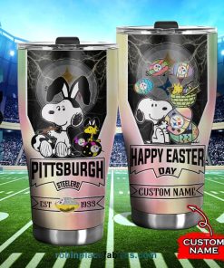 Pittsburgh Steelers NFL Snoopy Happy Easter Day Custom Name Tumblers Cup