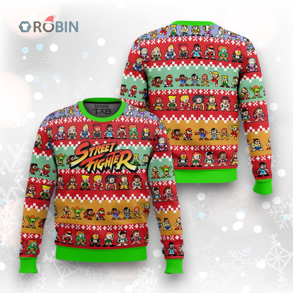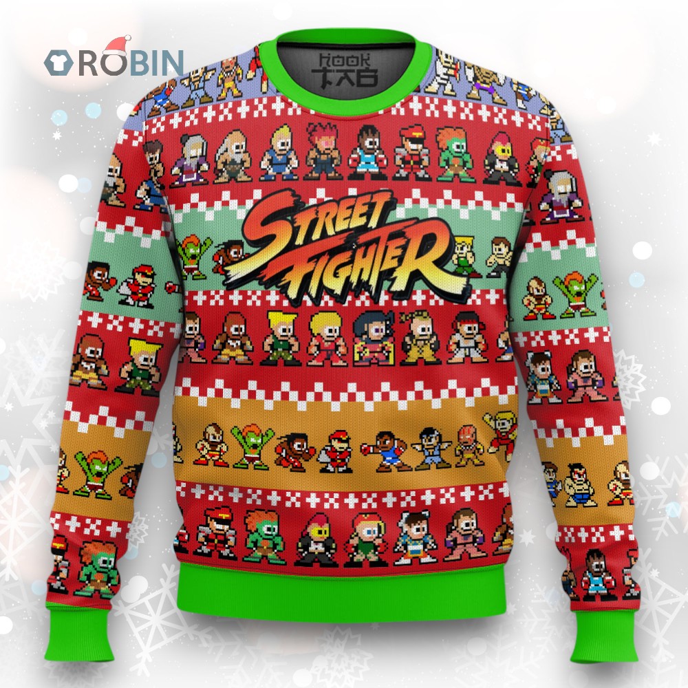 Level up your holiday cheer with this awesome sweater! Rock a retro gaming vibe with a festive Street Fighter design. Perfect for ugly sweater parties or cozy nights battling Blanka. Get yours before they're KO'd! ![]()