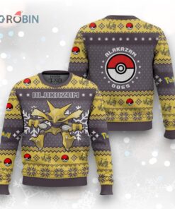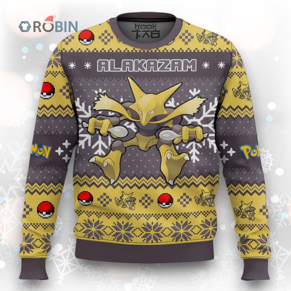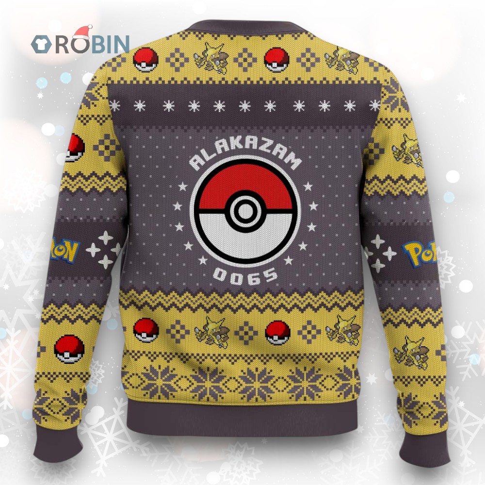 Imagine cozying up by the fire, proud to show off your favorite psychic Pokémon with this playful design. Alakazam takes center stage, surrounded by classic Poké Balls and snowflakes, perfectly blending nostalgia with holiday cheer. It's a quirky nod to the Pokémon fan in all of us. Ready to add some magical charm to your festive wardrobe? Grab yours now and let the holiday fun begin!