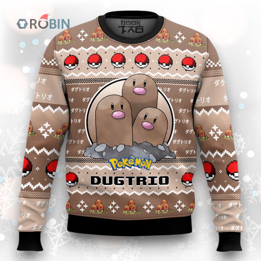 Deck the halls with a trio of digging delights! This holiday season, rock the ultimate ugly Christmas sweater featuring everyone's favorite Gen 1 ground type. Guaranteed to unearth some laughs at your next holiday party. Get yours before they burrow away!