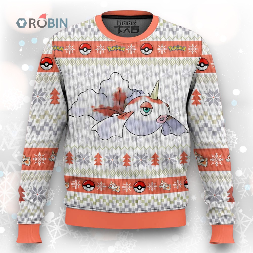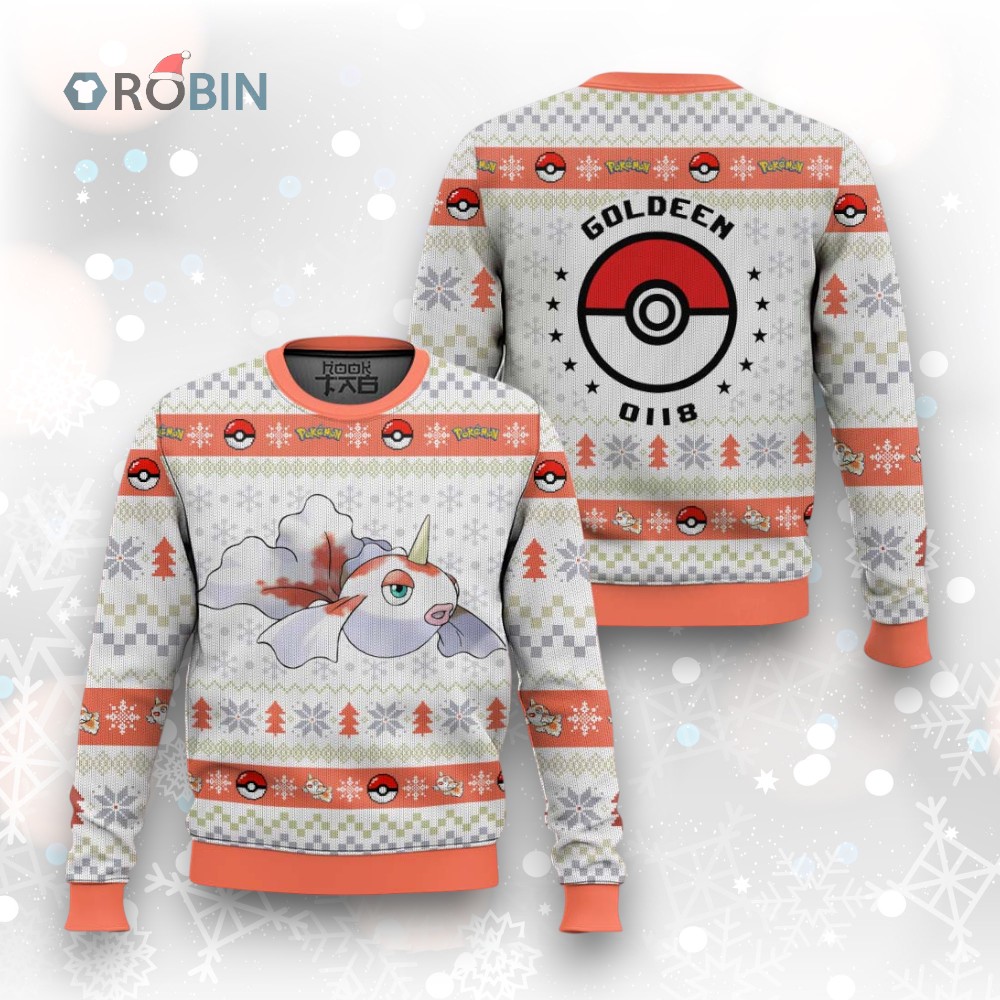 Dive into the holidays with this unique Goldeen-themed sweater! Show off your love for Pokemon with a splash of festive fun. The perfect apparel to make a splash at any holiday gathering. Get yours today!
