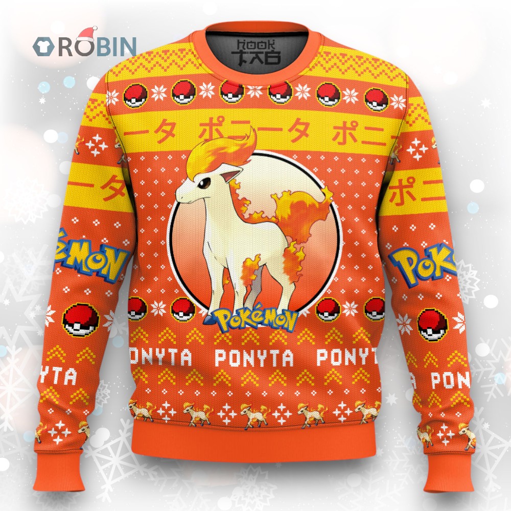 Giddy up for the holidays with this fiery friend! This sweater features a classic gen 1 Pokemon in an unforgettable festive design. Perfect for adding a spark of nostalgia and warmth to any winter celebration. Grab yours before they gallop away!