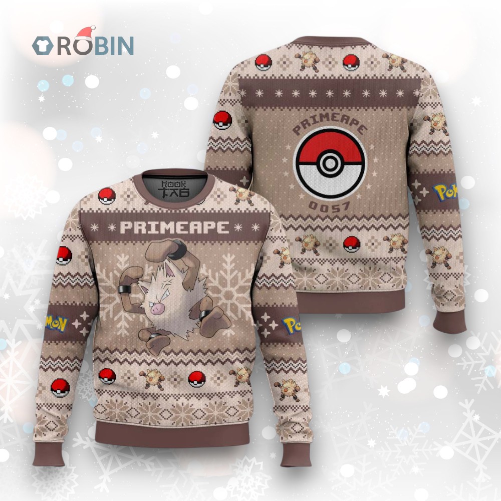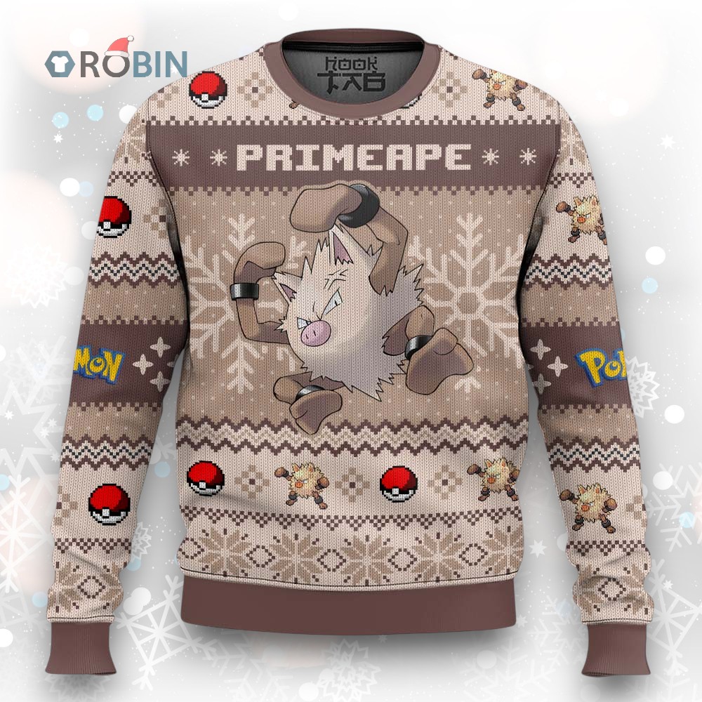 Get ready to rumble into the holidays with this hilariously angry primate! This festive sweater features a certain fighting type from the original games, ready to bring some holiday cheer (or maybe just a fierce glare) to your next party. Perfect for trainers who want to show off their vintage style!