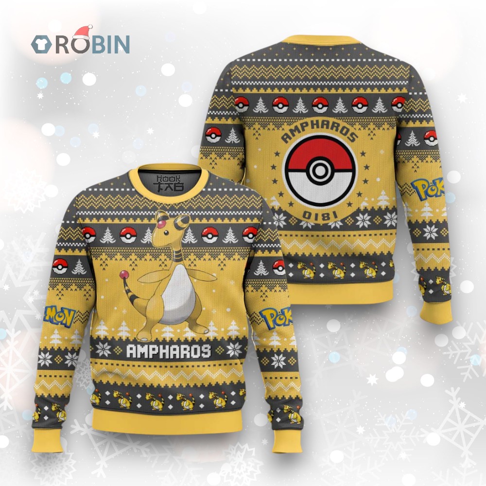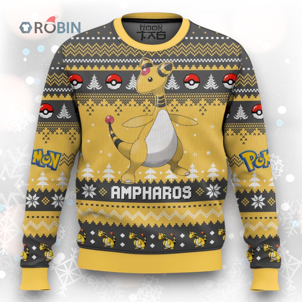 Light up the holidays with this shockingly festive Ampharos sweater! Featuring the beloved Gen 2 Electric-type Pokemon, this unique knit is perfect for any fan wanting to add some spark to their winter wardrobe. Get yours now and shock everyone at your holiday parties!