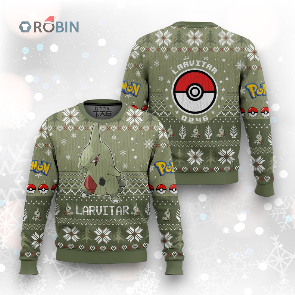 Rock this festive season with a touch of Gen 2 nostalgia! This sweater features the adorable Larvitar in a hilariously festive, dare I say, "ugly" Christmas design. Perfect for holiday parties or cozy nights in. Grab yours before they evolve away! 😉