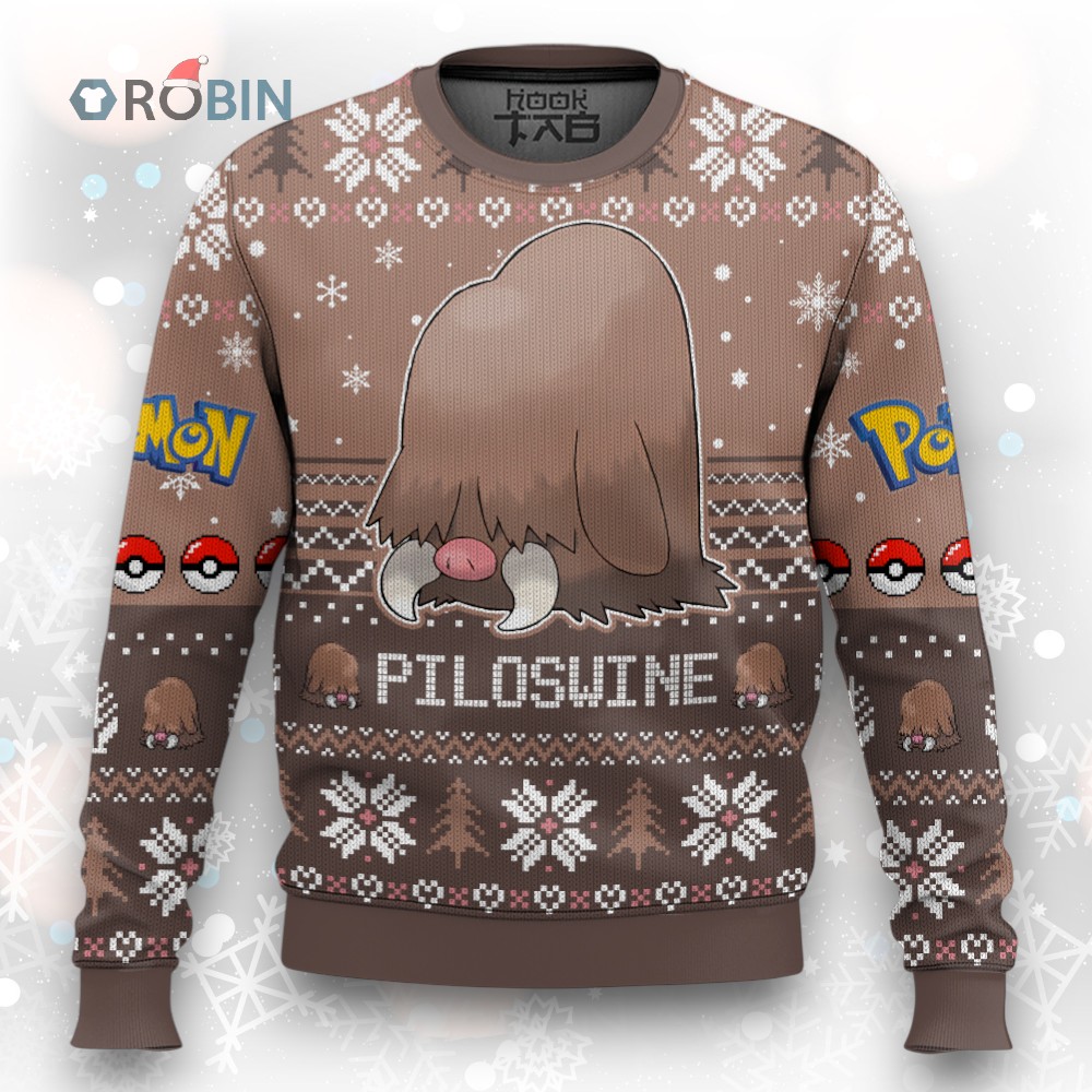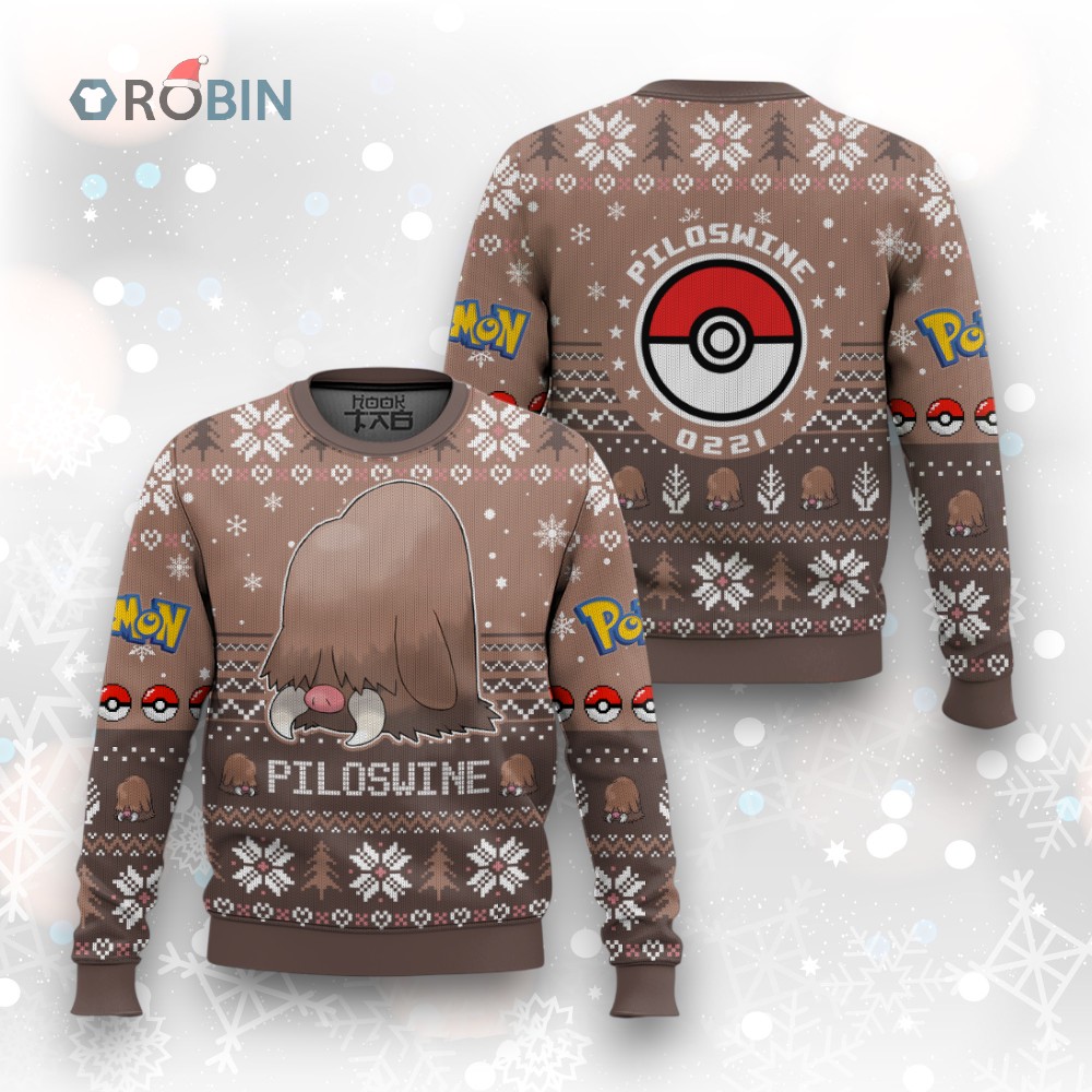 Rock this holiday season with a hilariously festive sweater! Piloswine's derpy face and icy breath reimagined in glorious knitted form. Guaranteed to win any ugly sweater contest! Perfect for trainers who love the Johto region. Limited stock, grab yours before they hibernate!